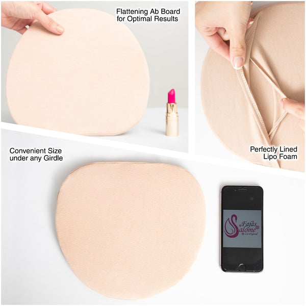 Experience the ultimate in body sculpting with our Flattering Board under Fajas! This perfectly lined foam ab board ensures optimal results, fitting seamlessly under any tight girdle or body shaper. Say goodbye to unwanted marks as it adheres to your muscles, and embrace confidence. Also known as the lipo board, abdominal compression board, or tabla moldeadora, it's your secret to a flawless silhouette. Girdle not included. Dimensions: 9" x 8.5" x 0.5". Get ready to transform with the Tummy Tuck Board in comfortable Lycra Spandex